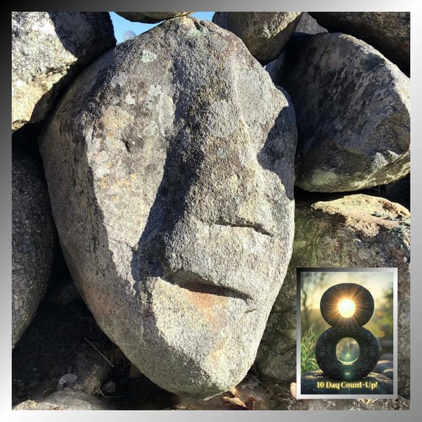 I found this boulder in my neighbor's stone wall recently. I HAD to stop and look more closely. Pausing in front of it, I found myself… well, listening.